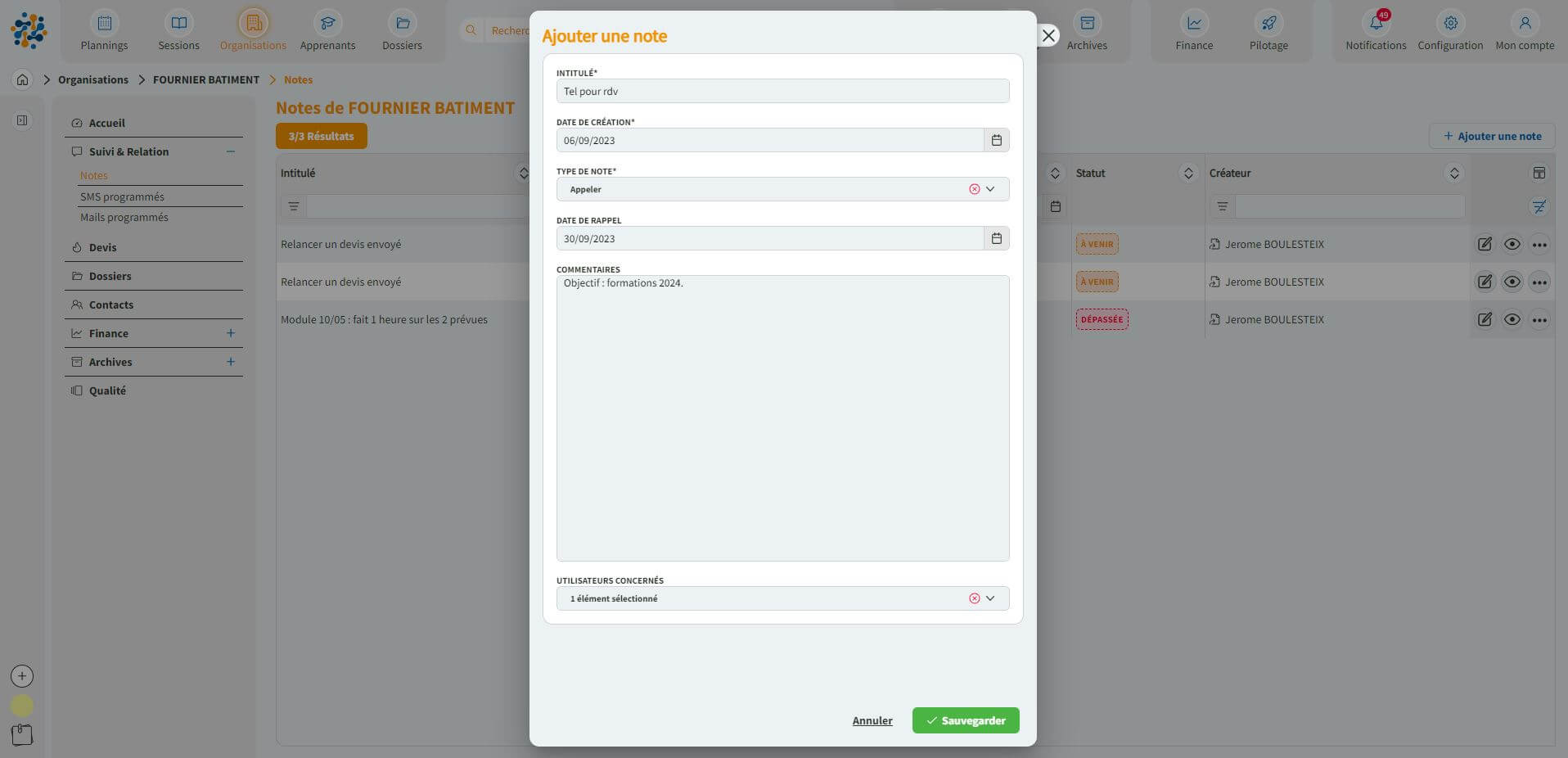 - Le suivi d’affaires sans oubli